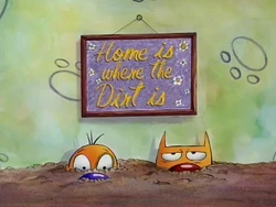 Home Is Where the Dirt Is is the first half of the 17th episode of Season 1. In this episode, CatDog tries to catch a gopher, who steals anything in his dirt.
